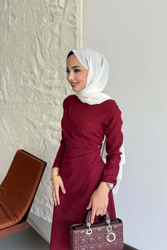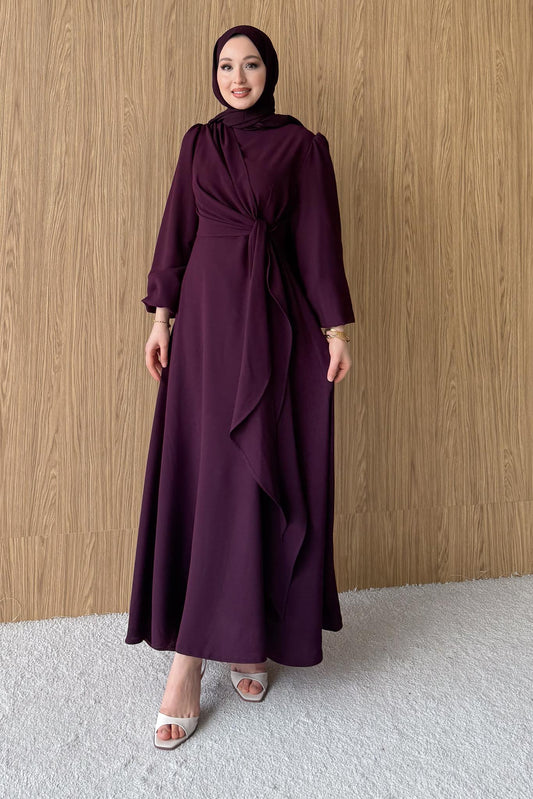 Bağlamalı Elbise Mürdüm