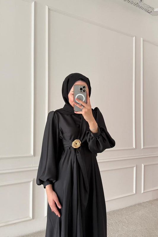 Şura Broş Saten Abiye Siyah