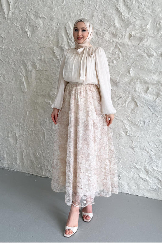 TükendiArchie Desenli Etek Bej