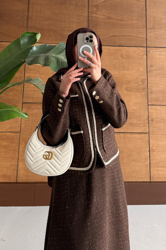 %42 İndirimGold Varaklı Tüvit Takım Kahverengi