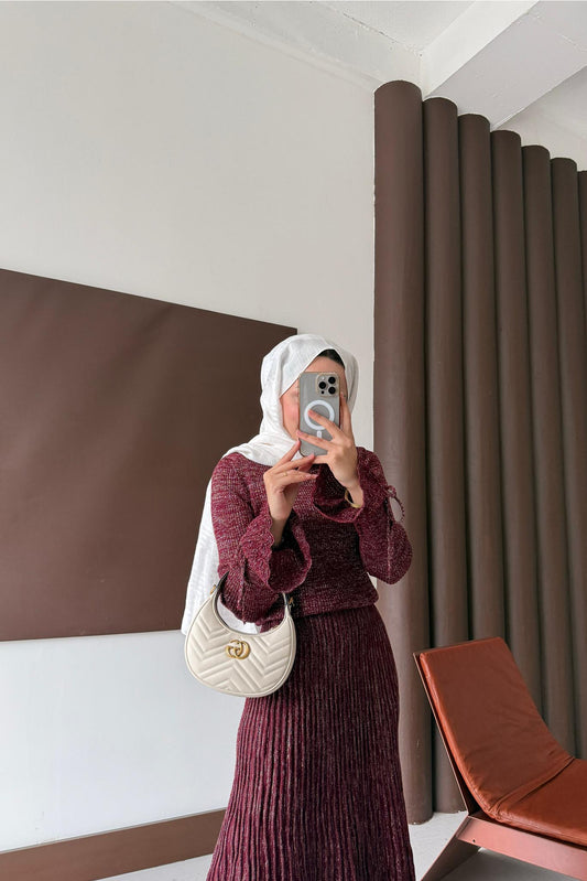 %30 İndirimParıltı Simli Etek Takım Bordo