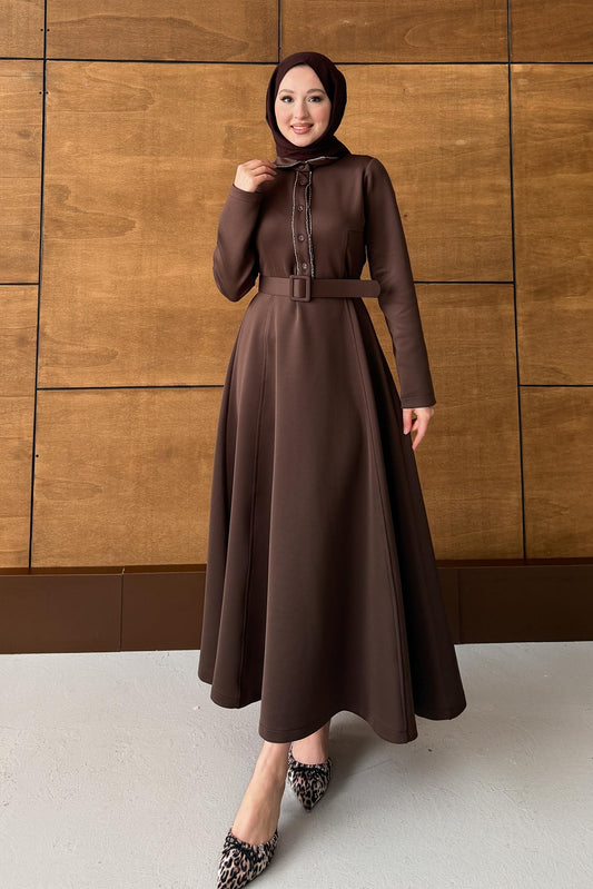 %30 İndirimSorella Alerli Elbise Kahverengi
