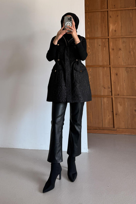 Yaprak Kapitone Yelek Siyah
