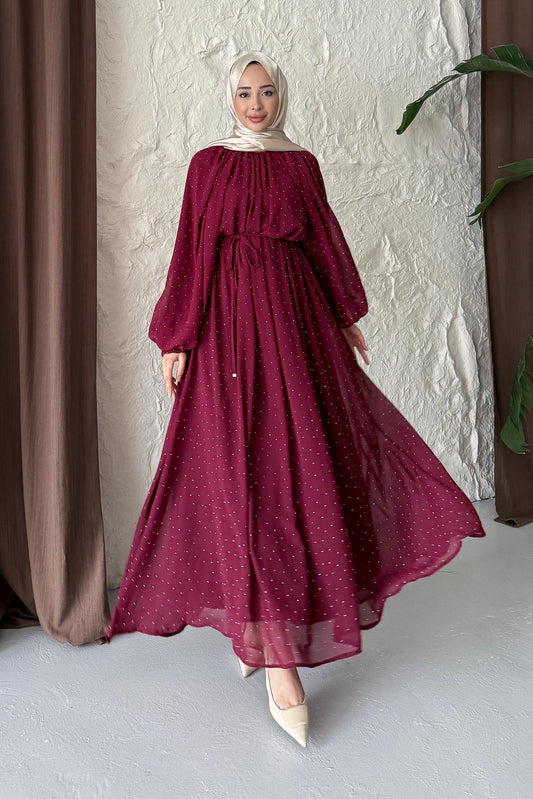 Maria İpek Taşlı Elbise Bordo