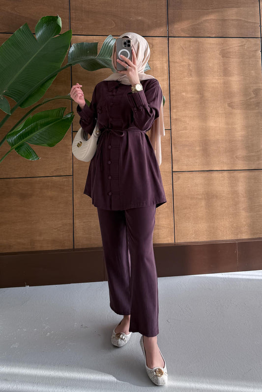 %29 İndirimMinimal Balon Kollu Takım Bordo