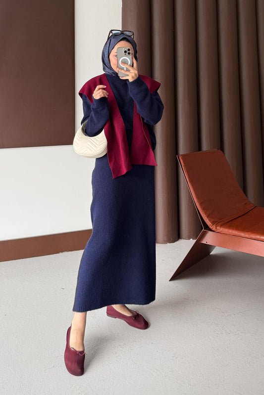 Kare Paçalı Atkı Lacivert