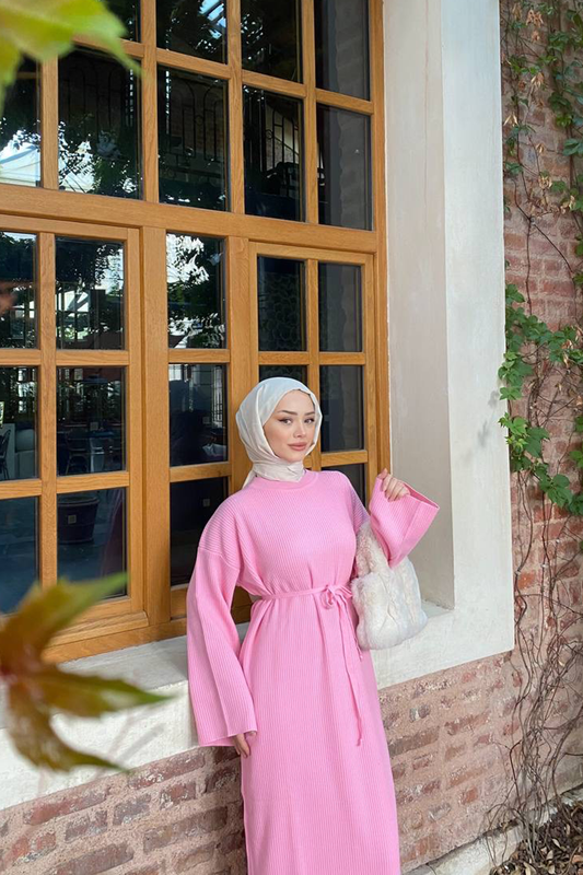 %15 İndirimNesire Fitilli Triko Elbise Pembe
