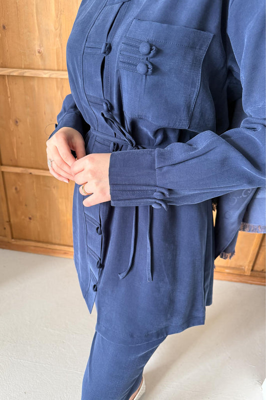 %24 İndirimPolyana Düğmeli Takım Lacivert