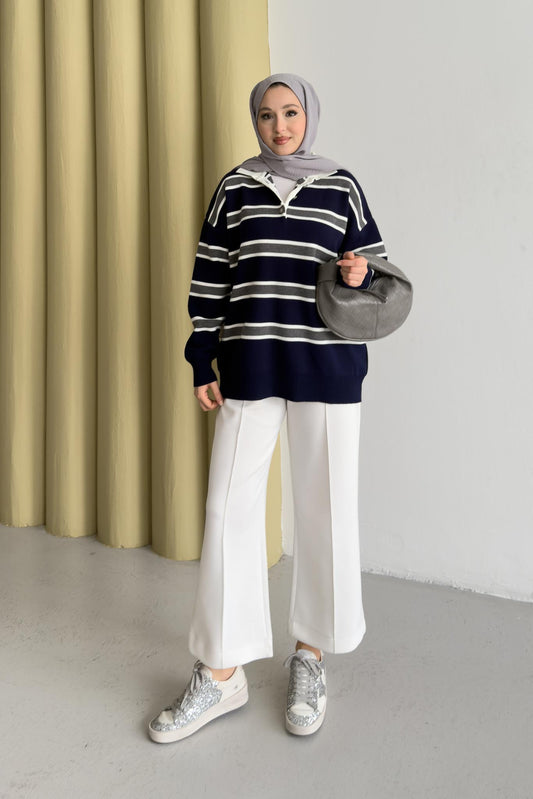 Polo Yaka Çizgili Tunik Lacivert