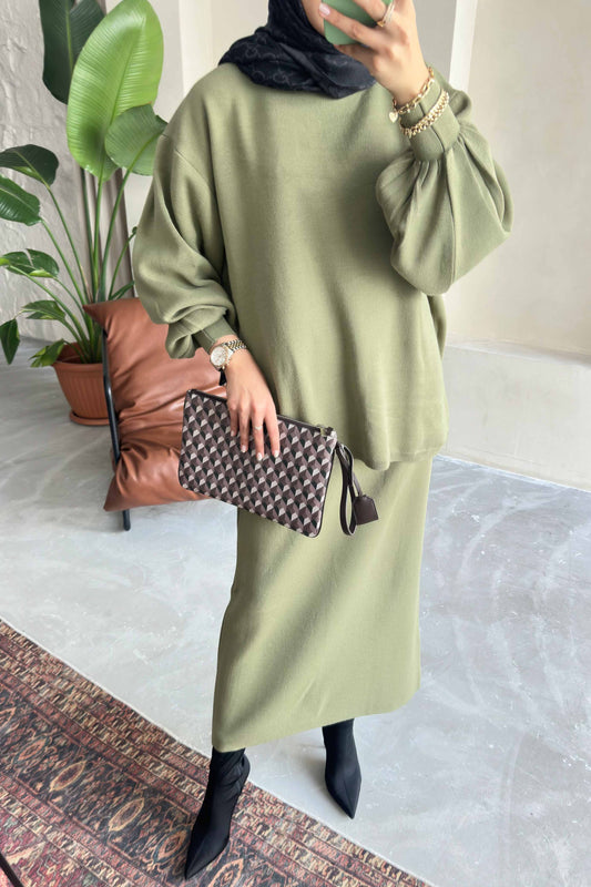 %18 İndirimMinimal Balon Kollu Takım Su yeşili