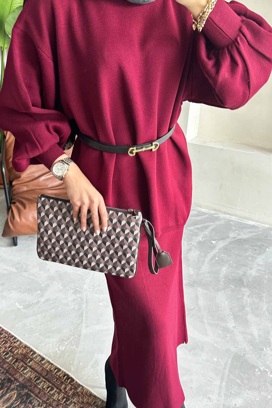 %18 İndirimMinimal Balon Kollu Takım Bordo