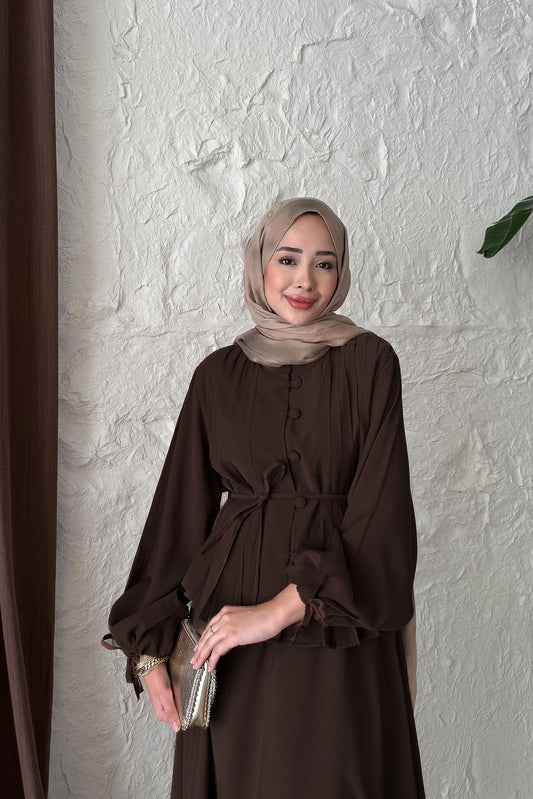 %20 İndirimPolyana Düğmeli Takım Kahverengi