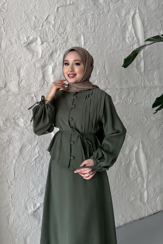 %20 İndirimPolyana Düğmeli Takım Haki