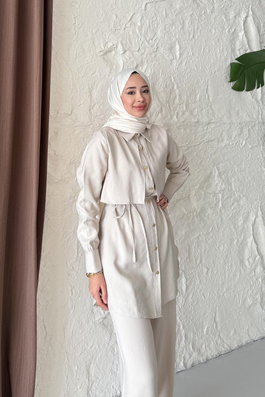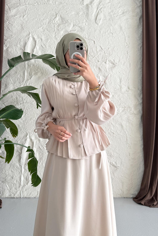 %20 İndirimPolyana Düğmeli Takım Bej