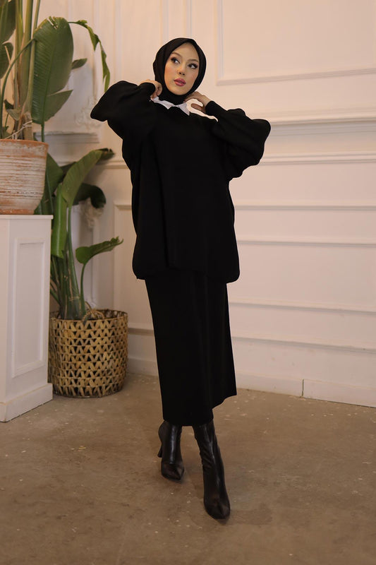%18 İndirimMinimal Balon Kollu Takım Siyah