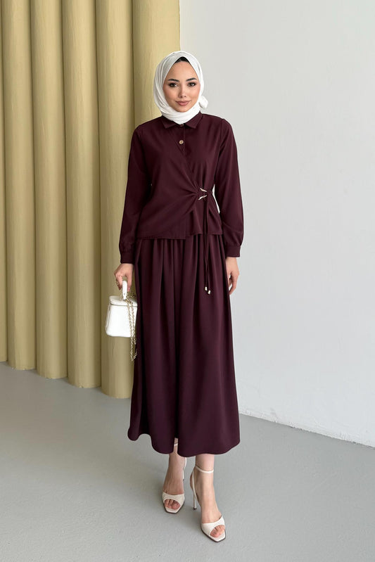 %16 İndirimNora Şifon Takım Bordo(Ön Sipariş)