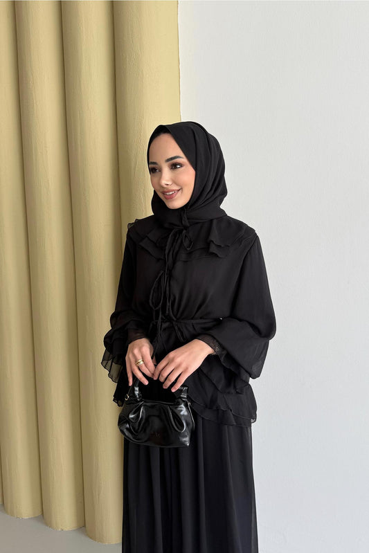 %16 İndirimNora Şifon Takım Siyah(Ön Sipariş)