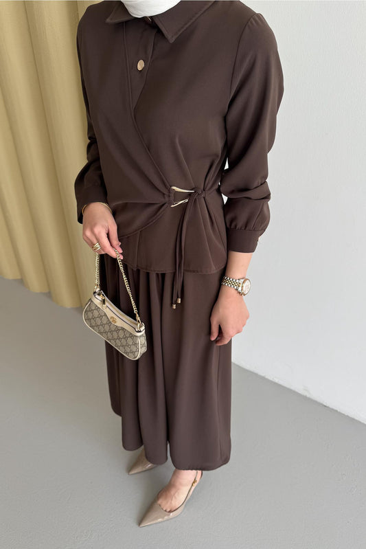 %16 İndirimNora Şifon Takım Acı Kahve(Ön Sipariş)