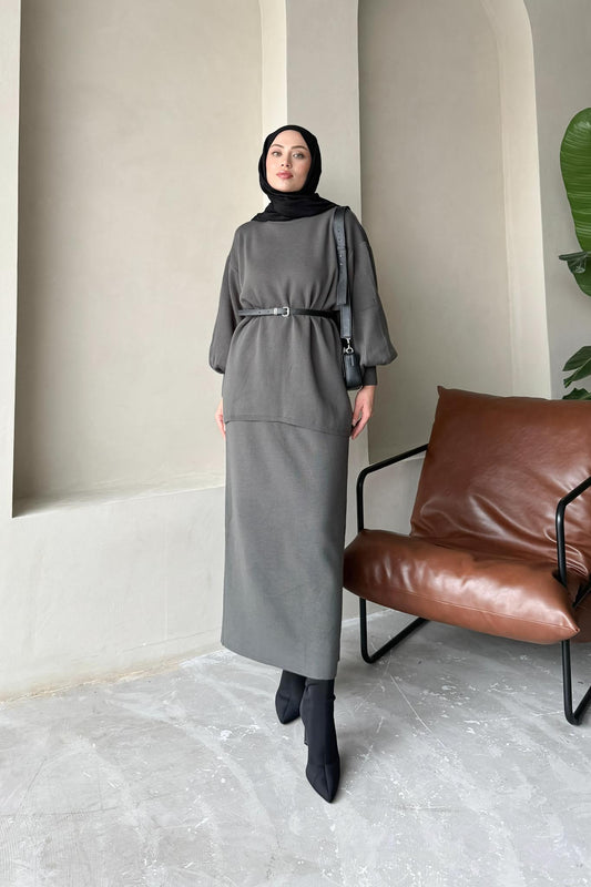%18 İndirimMinimal Balon Kollu Takım Antrasit