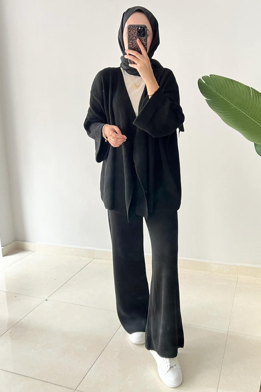 %6 İndirimBağlamalı Kimono Takım Siyah