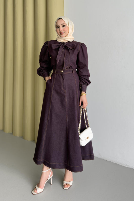 %36 İndirimFularlı Kot Takım Bordo
