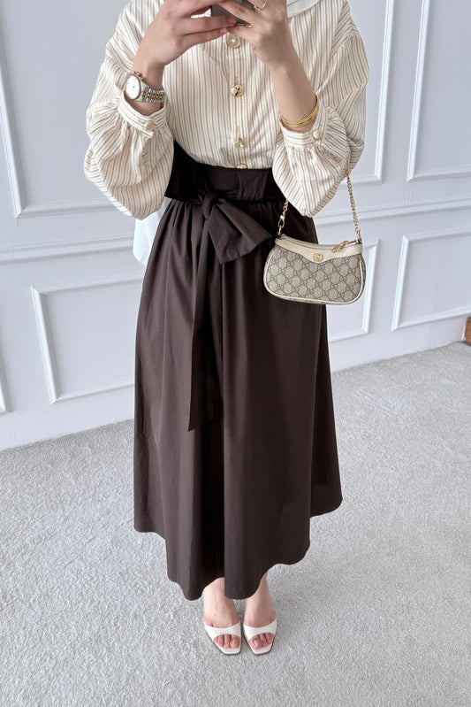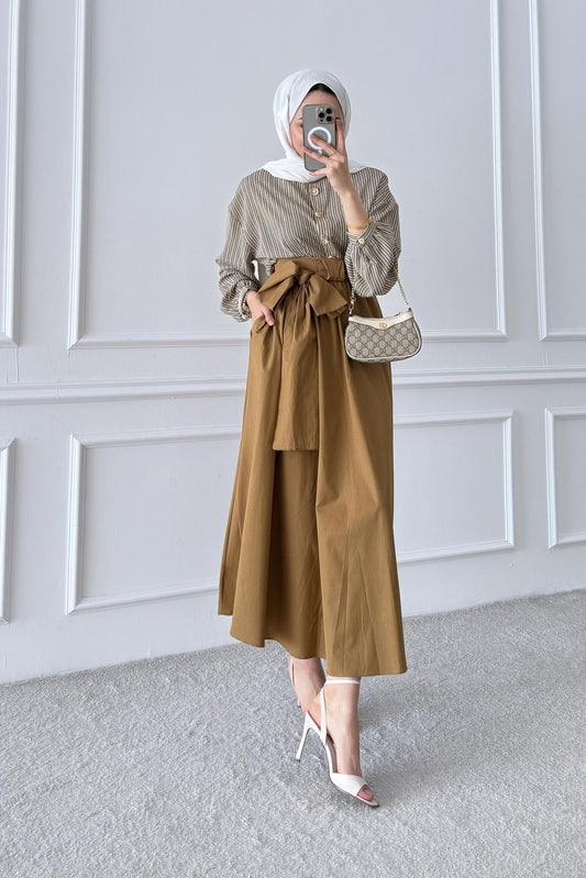 %23 İndirimÇizgili Etekli Takım Kahverengi