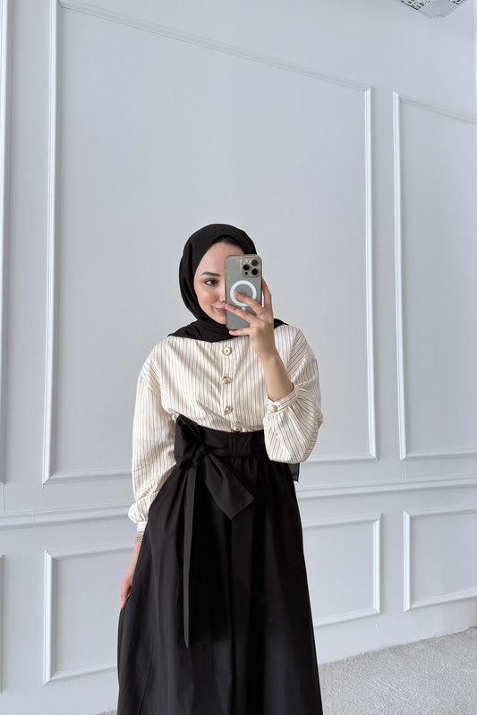 %23 İndirimÇizgili Etekli Takım Siyah