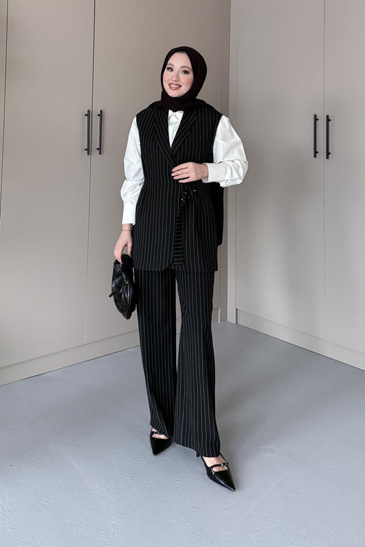 Lorasse Çizgili Takım Siyah