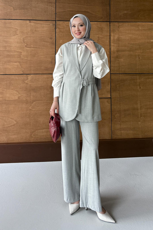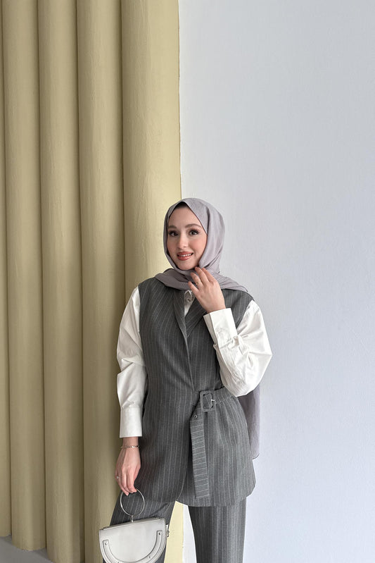 Lorasse Çizgili Takım Gri