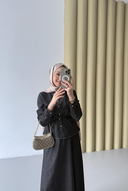 %33 İndirimDüğmeli Kot Takım Siyah