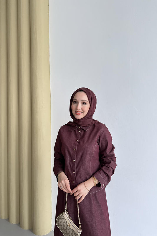 %33 İndirimDüğmeli Kot Takım Bordo