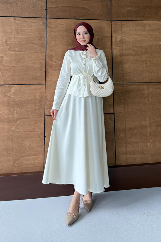 %33 İndirimDüğmeli Kot Takım Ekru