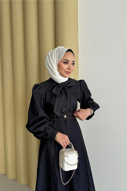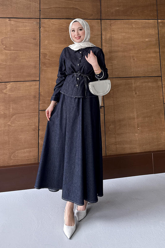 %36 İndirimFularlı Kot Takım Lacivert