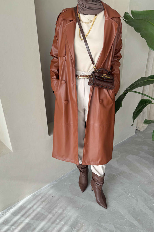 Sara Deri Trençkot Kahverengi