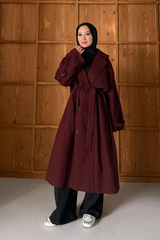 Trenç Görünümlü Kaban Bordo
