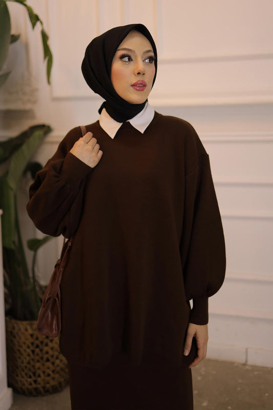 %18 İndirimMinimal Balon Kollu Takım Kahverengi