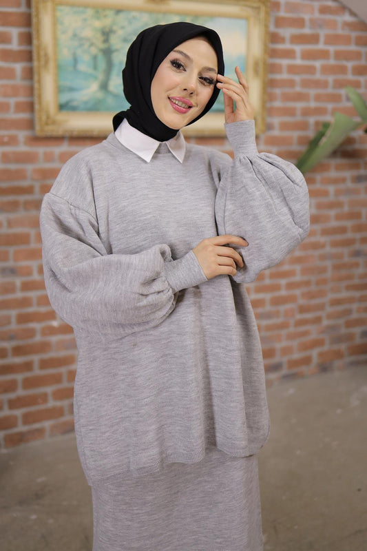 %22 SaleMinimal Balloon Sleeve Suit Gray
