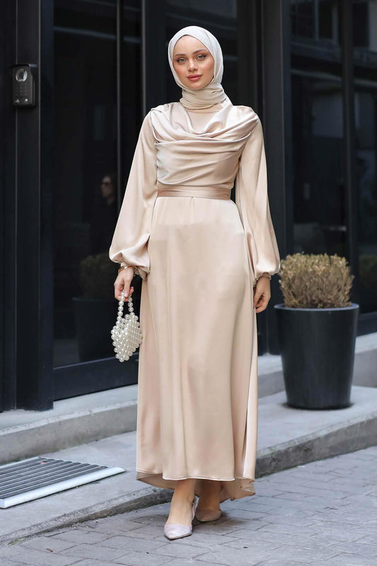 Seyran Pleated Dress Beige