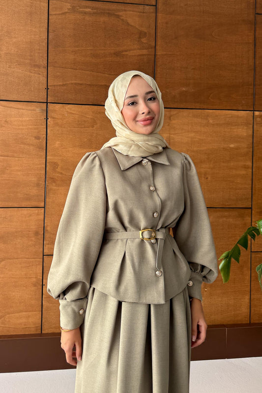 Ajda Pleated Skirt Set Petrol