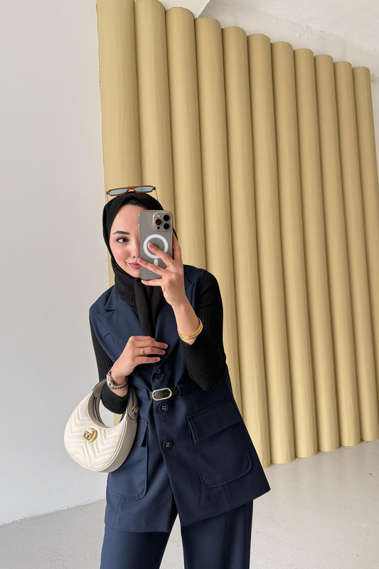 Zamansız ve güçlü bir renk olan lacivert, Emine Aydın tasarımlarında modern çizgilerle...
