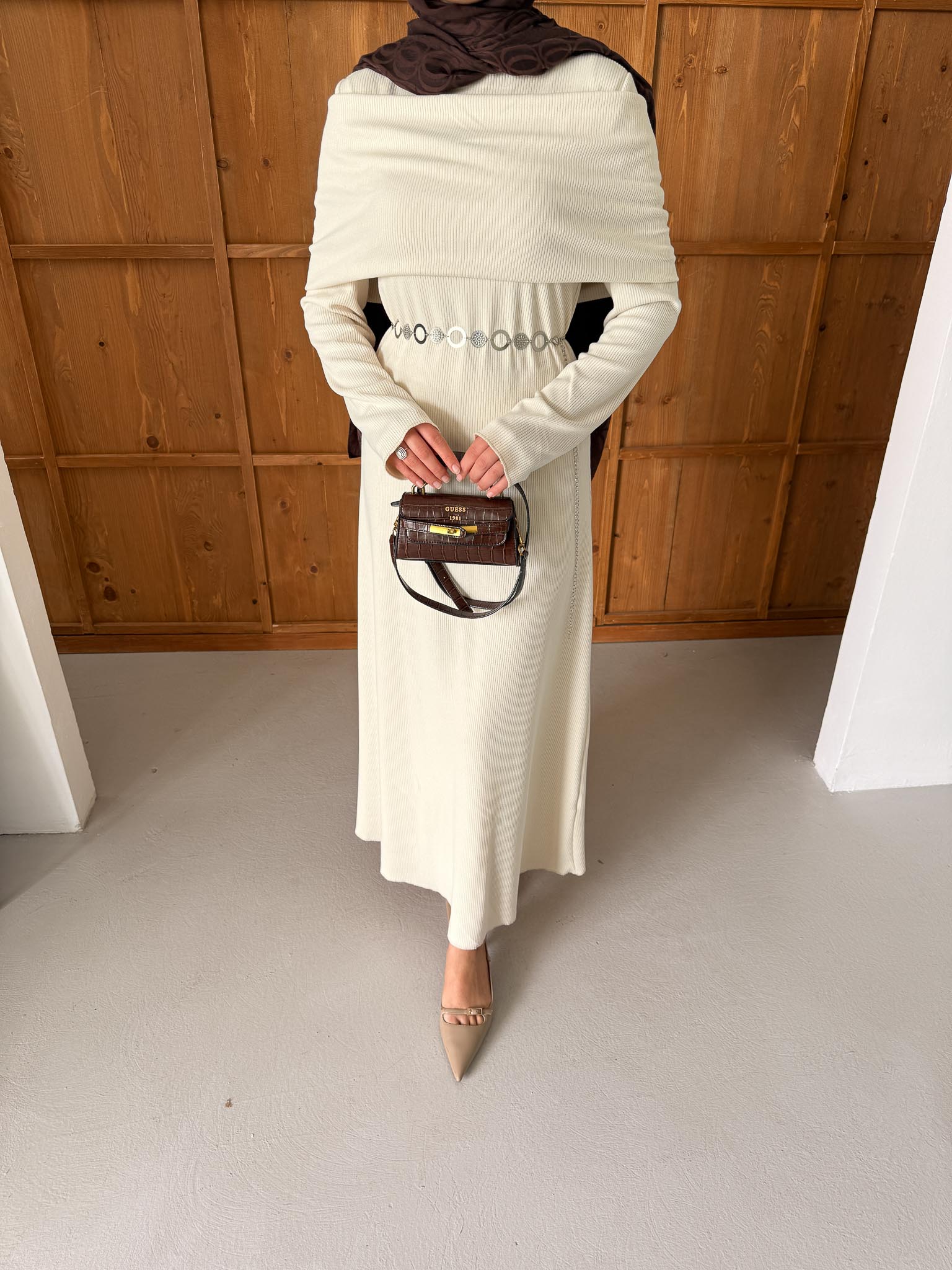 It is a comfortable dress with voile lining, does not show the inside. It has elasticated sleeves and buttons in the front.
