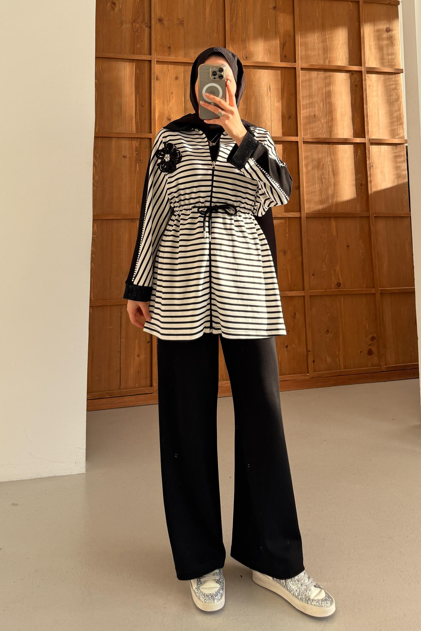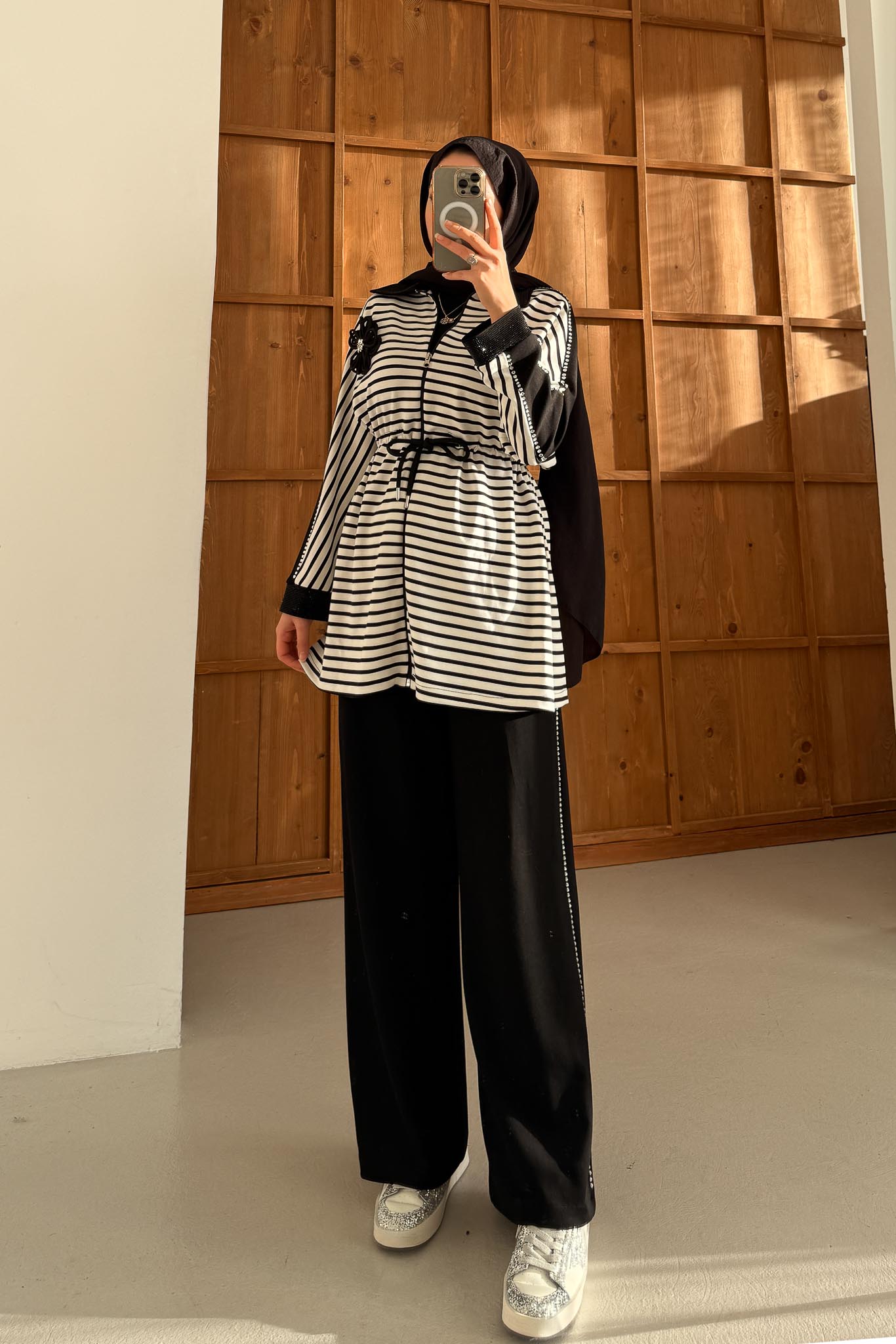 In the shootings, the length of the products is adjusted according to the model, so the length written in the product information should be taken into account.