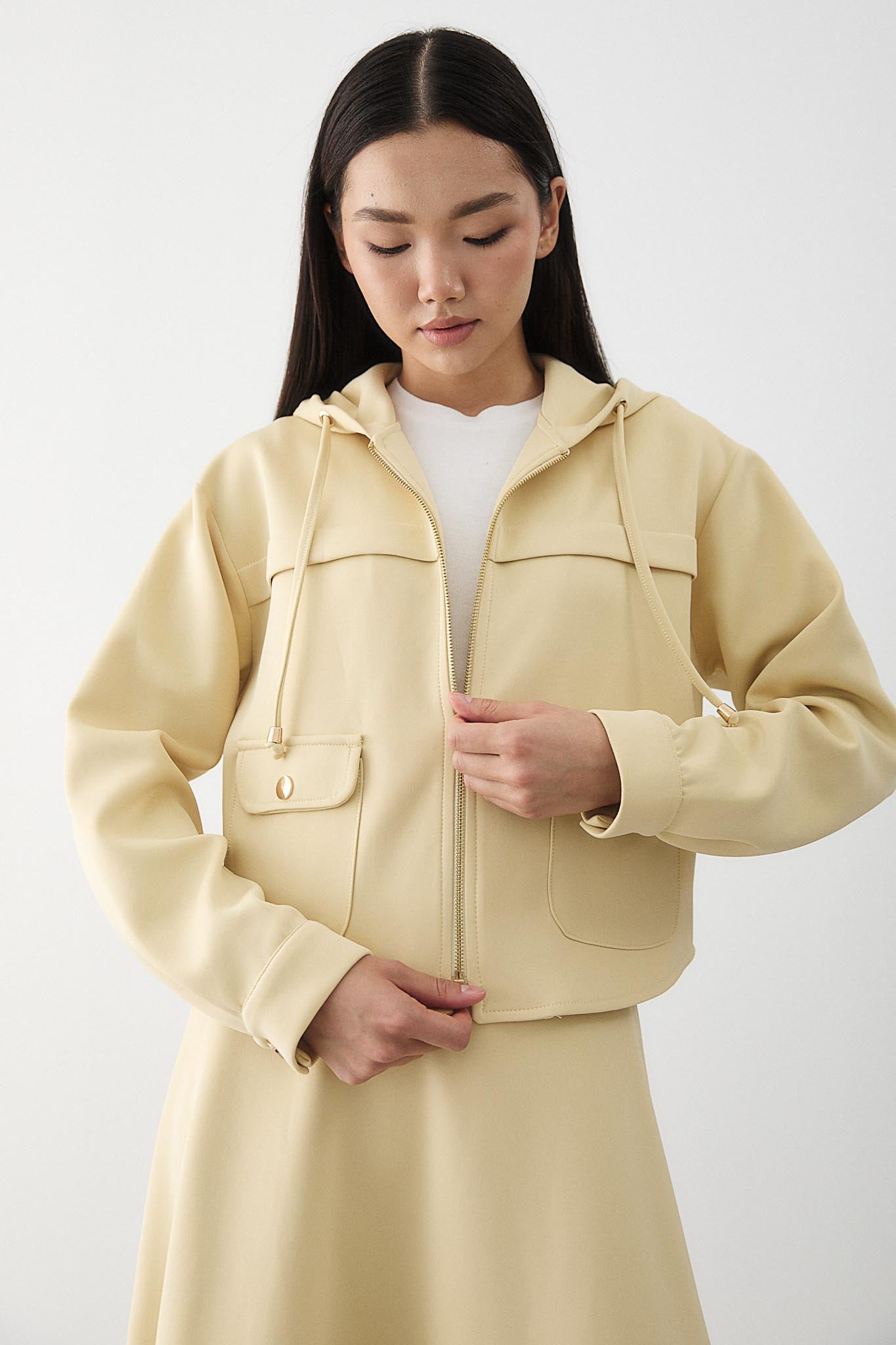 Tunik çift cepli, Kapüşonlu ve fermuarlıdır, Ortalama 50 cm dir, Etek Kloş formda ortalama 95 cm dir.