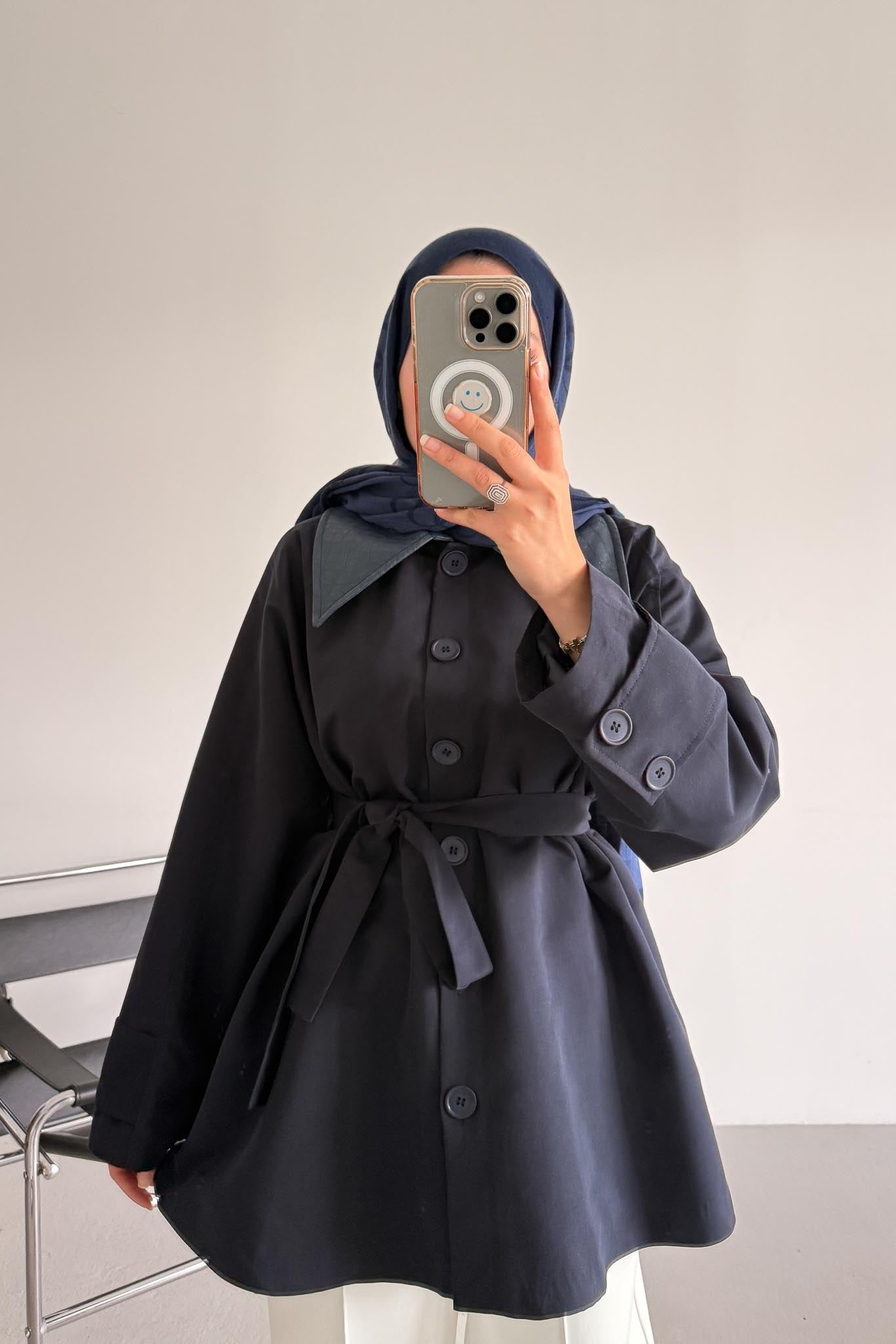 Trenç Yakası Deridir, Boydan Düğmelidir ve Kuşaklıdır, Ortalama 78 cm dir.