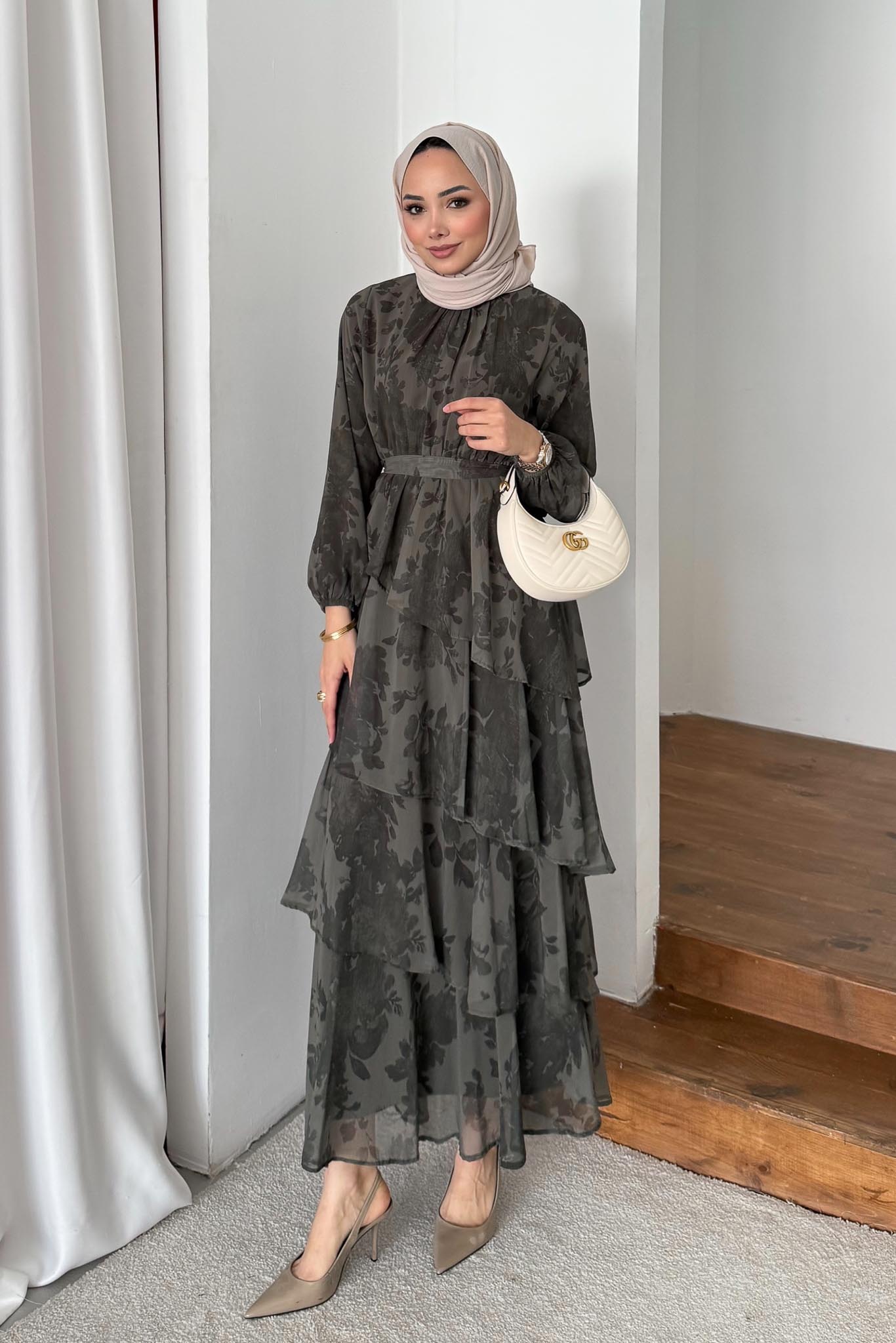 Arsen Katlı Elbise Yeşil