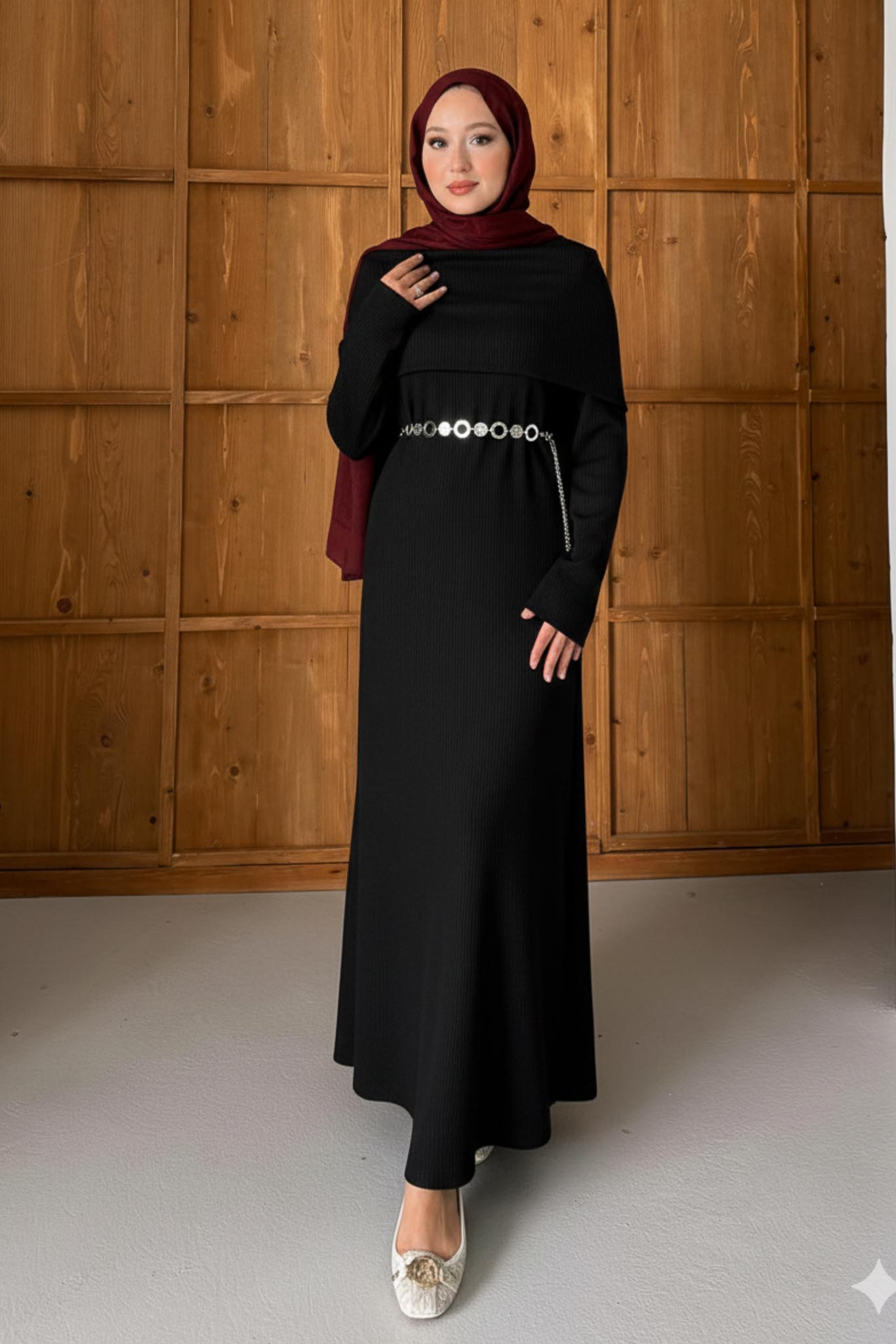 Bondi Şallı Elbise Siyah
