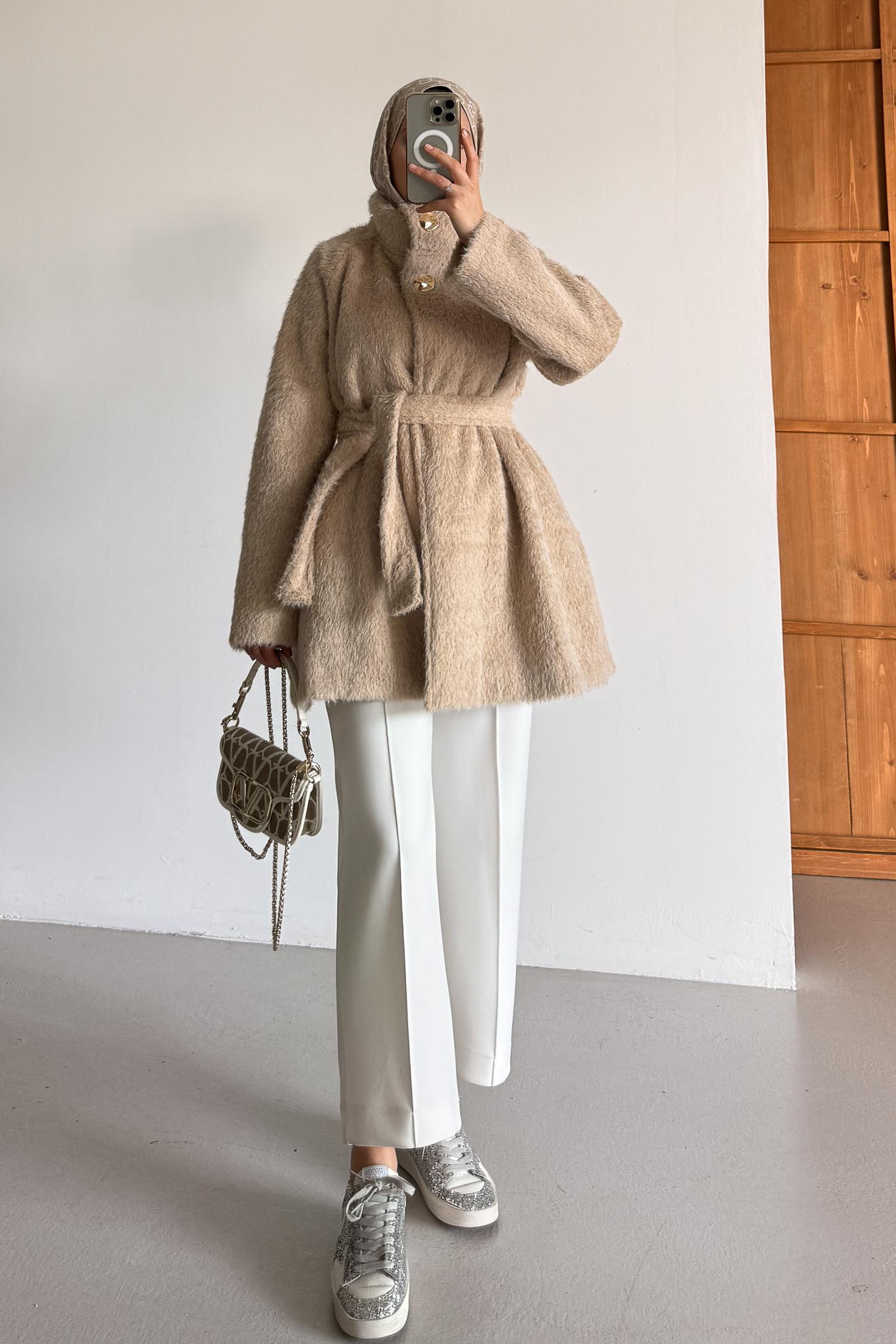 ortalama: 82 cm, Cepli ve Yakasında broş Düğmelidir ve seyyar kuşaklıdır.