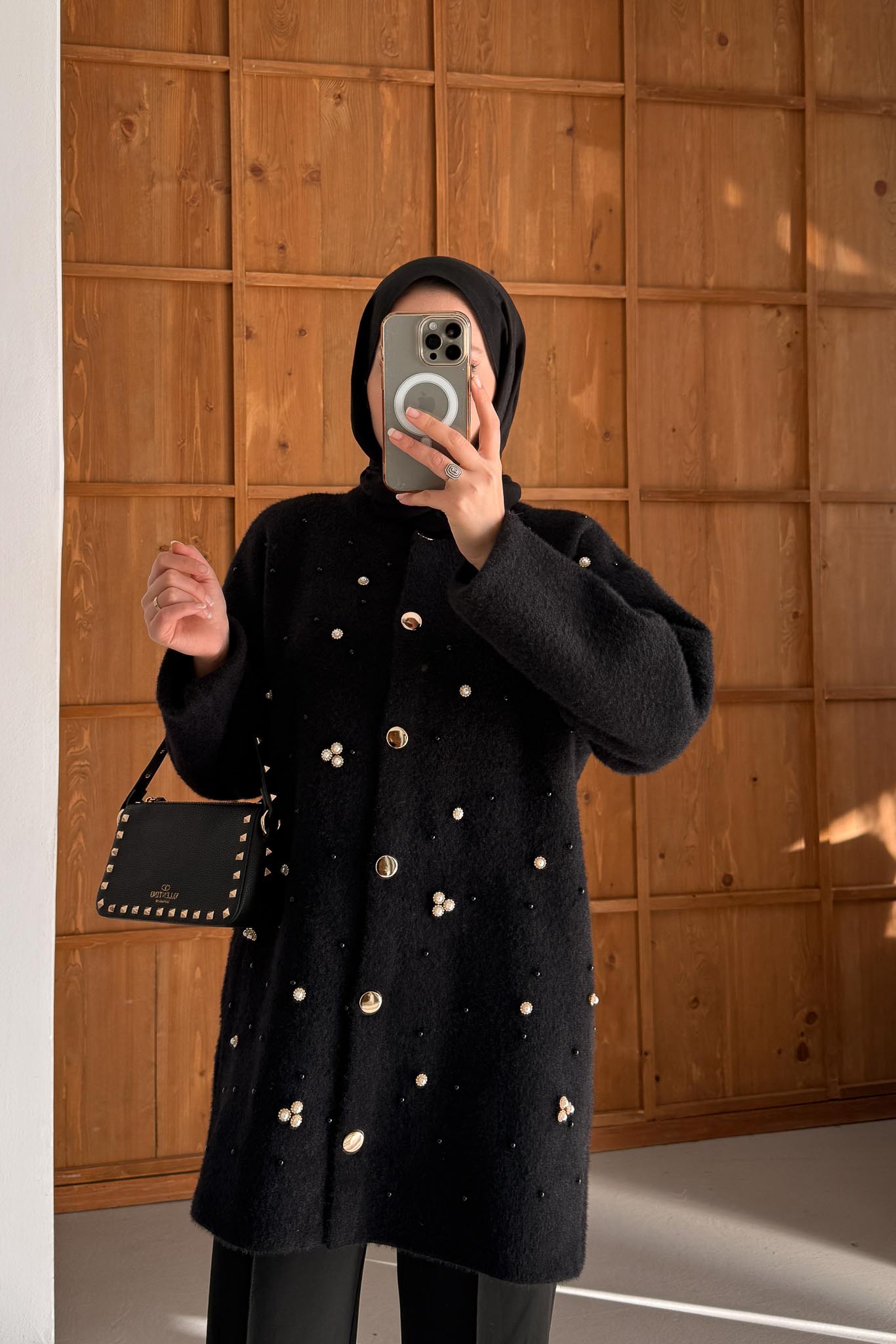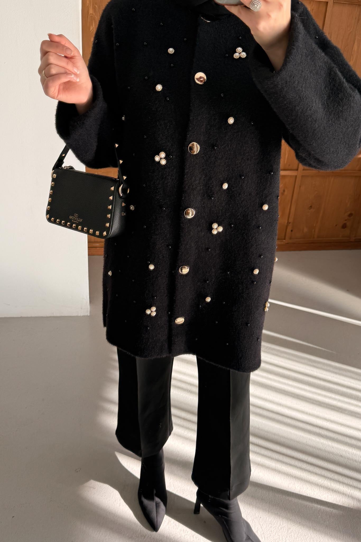 Broşlu Yumoş Hırka Siyah