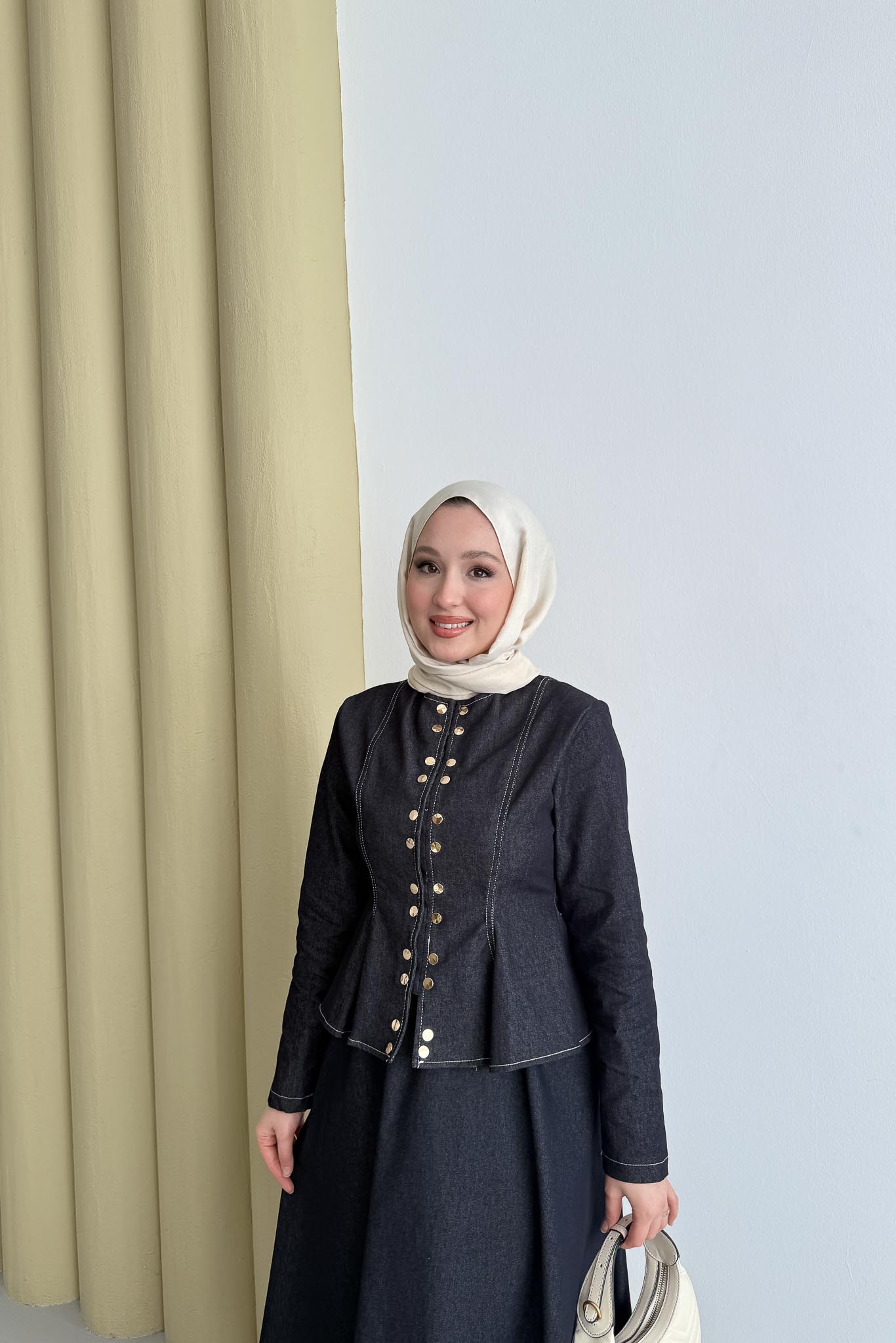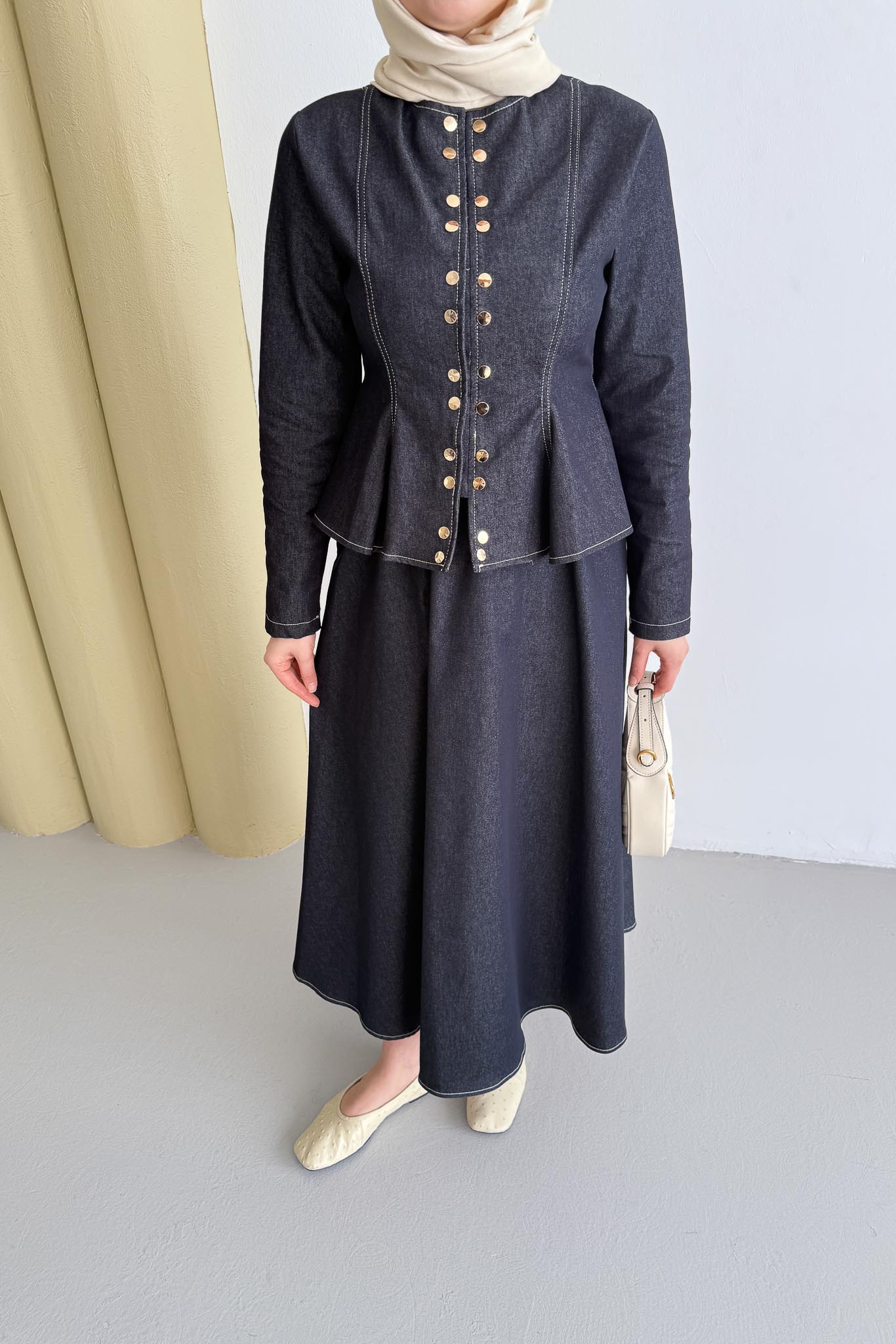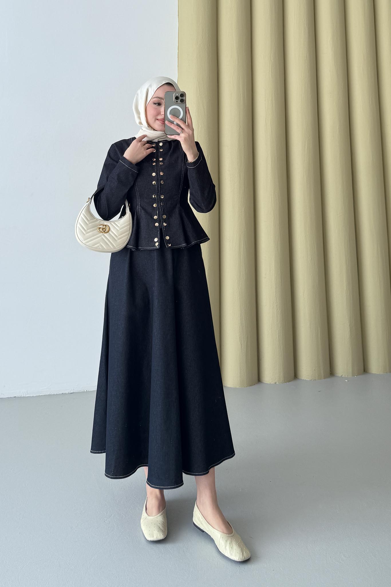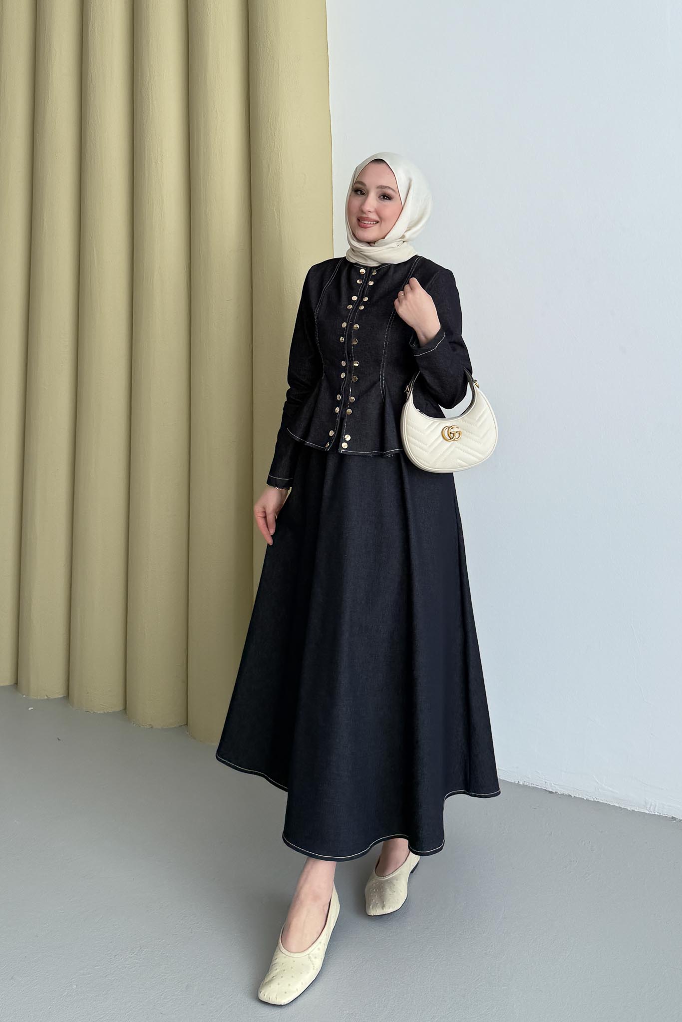 Harika bir dokusu ve duruşu vardır, tunik ortalama 46 cm dir, Etek Kloş formdadır ve 96 cm dir.