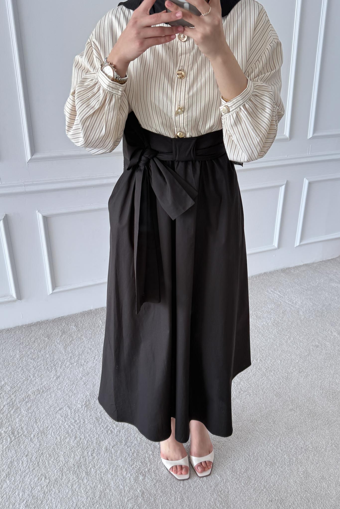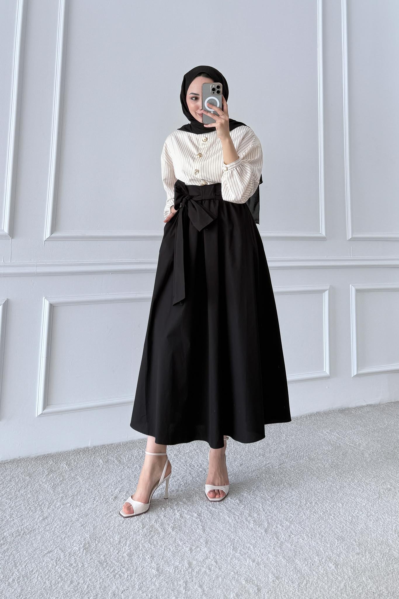 Gömlek Broş Düğmelidir, Etek Beli Bağlamalıdır kloş formdadır,